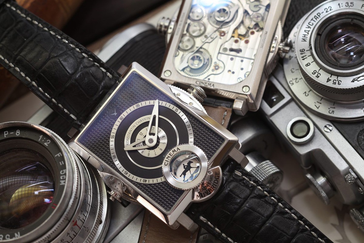 Это наручные часы «Декалог» с еврейской индикацией времени в хелеках и регах, часы «Синема» с вмонтированным в них миниатюрным устройством по типу кинопроектора, показывающим движущиеся картинки, часы «Луноход» с уникальной индикацией фаз Луны в виде сферы в сердце циферблата и, наконец, марсианская коллекция.