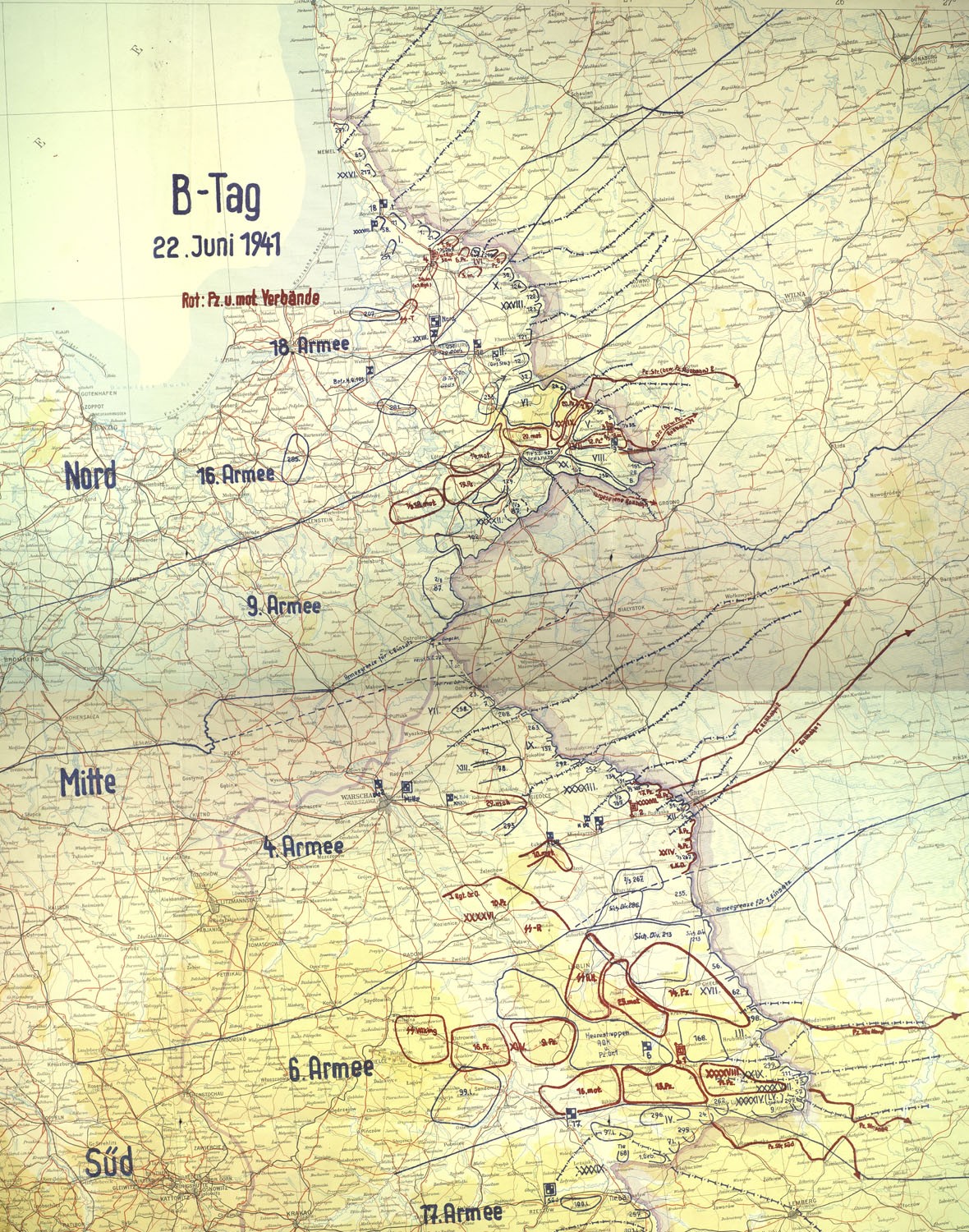 Силы немцев, сконцентрированные для удара по СССР, составили 4 050 000 человек (3 300 000 в сухопутных войсках и войсках СС, 650 000 — в авиации и около 100 000 — во флоте). Кроме того, на вооружении было 43 812 орудий и миномётов, 4 215 танков и штурмовых орудий и 3 909 самолётов. К 22 июня 1941 года союзники Германии также подтянули к границам СССР 744 800 человек, 5 502 орудия и миномёта, 306 танков и 886 самолетов.