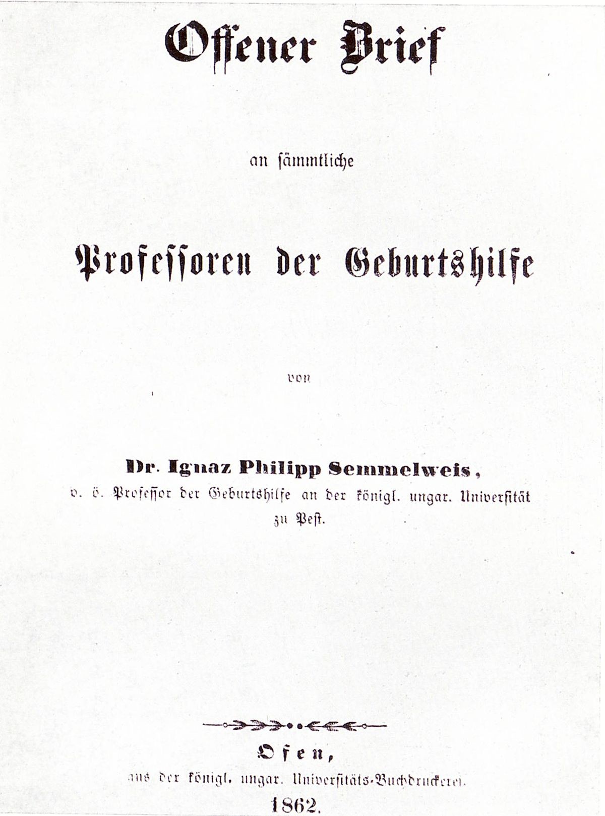 Открытое письмо И. Ф. Земмельвейса профессорам-педиатрам, 1862. Источник: Wikimedia Commons