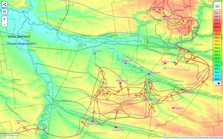 И постоянное продавливание опорников ВСУ говорит о том, что скоро эта линия может рассыпаться. А это может привести не только к быстрому окружению Курахово. Но и к … гораздо более далеко идущим последствиям. В т.ч. к выходу к реке Волчья в районе Андреевки и наступление здесь далее в западном направлении.