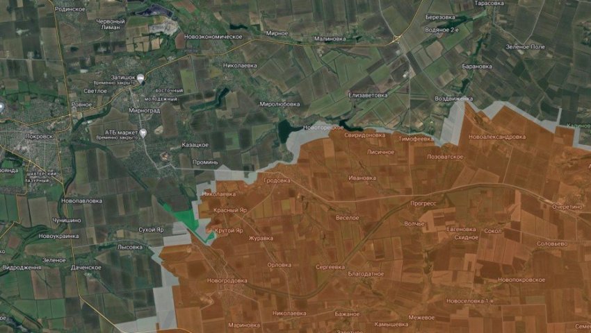 На северном участке зафиксировано продвижение ВС РФ в районе Гродовки, сообщает PulsePen. Продолжаются бои в Лысовке. Установить контроль над населённым пунктом до сих пор не удаётся. Да и кадров объективного контроля с этого участка нет уже давно. Западнее Селидово наши бойцы имеют успех. Враг сообщает, что потерял контроль над Григоровкой и Петровкой. Сейчас в населённых пунктах идёт зачистка территории. Это же касается Юрьевки. Также наши бойцы продвигаются вдоль железной дороги и постепенно подступают к Пустынке - как с востока, так и с севера.