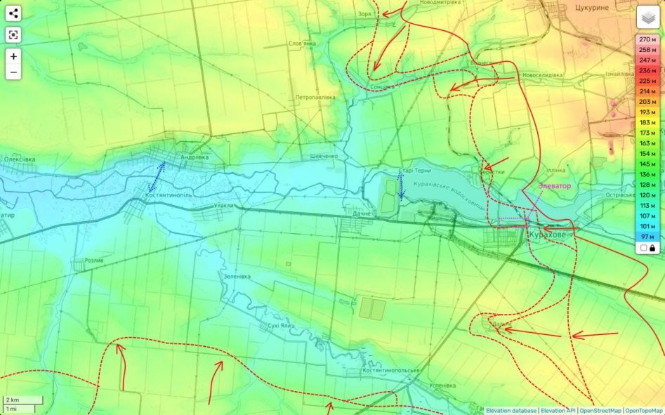 После наших успехов в районе Берестков и прямой угрозы Старым Тернам, противник перебросил сюда резервы и сумел относительно стабилизировать здесь фронт, но у них сразу образовалась дыра в самом Курахово, чем наши бойцы 114-ой бригады и воспользовались (заняв район элеватора, а к утру и заняв первые пятиэтажки высотной застройки).