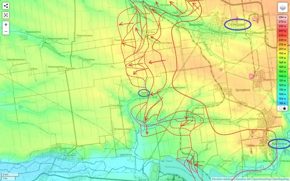 Тем временем бои продолжаются и в районе Курахово. Давление на Разлив временно снизилось в связи с успешными действиями наших войск в районе Большой Новосёлки. Не исключено, что основной удар по охвату Курахово будет перенесен с населенного пункта Разлив на населенный пункт Богатырь. Севернее Курахово части ВС РФ также добились значительных успехов, продвигаясь вперед и укрепляя свои позиции.