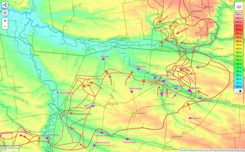 Но основной удар сейчас наша группировка «Восток» проводит не здесь, а чуть северо-западнее, пытаясь двигаться вдоль реки Сухие Ялы на север.