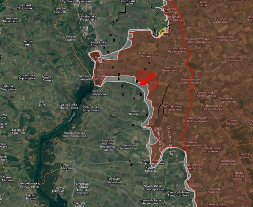 ВС РФ расширили контроль территории южнее Берестового, продвинулись на участке шириной до 2.85 км на глубину до 1.25 км. Продолжаются встречные бои в районе Тернов.