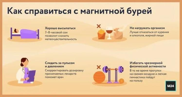 Специалисты отмечают, что подобная геомагнитная обстановка на протяжении дня с большой долей вероятности спровоцирует головные боли и скачки артериального давления. Особенно внимательно следить за своим самочувствием в дни магнитных бурь нужно людям, у которых имеются различные хронические заболевания.