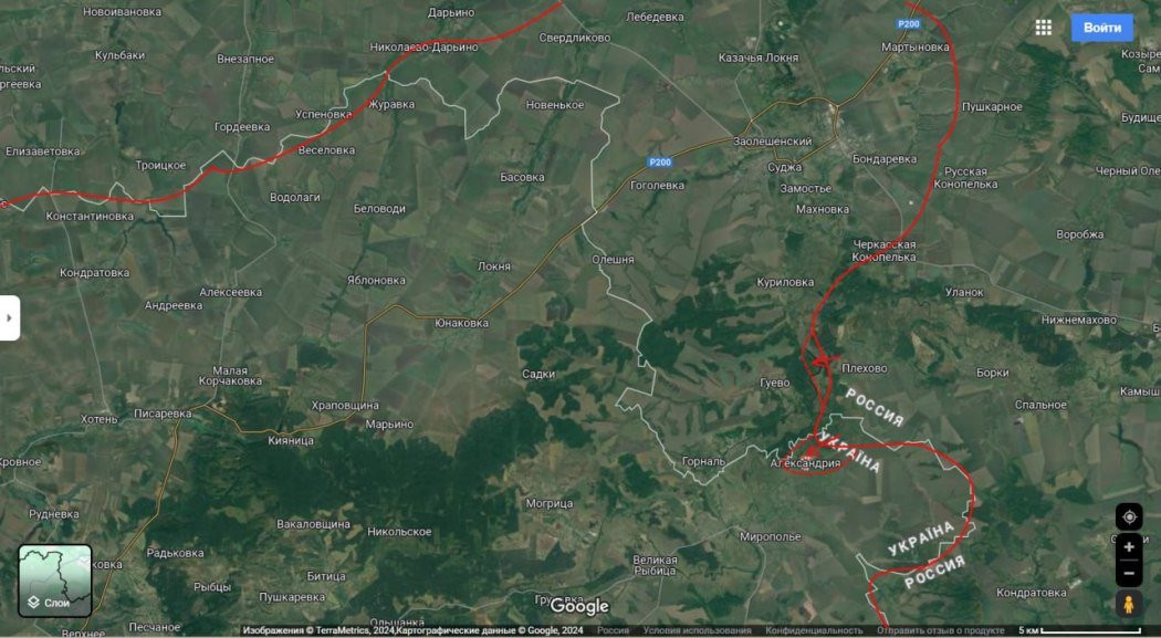 Вчера, как мы помним, и противник тоже это признал, наши части южнее Суджи зашли на территорию Сумской области в районе населённого пункта Александрия.
