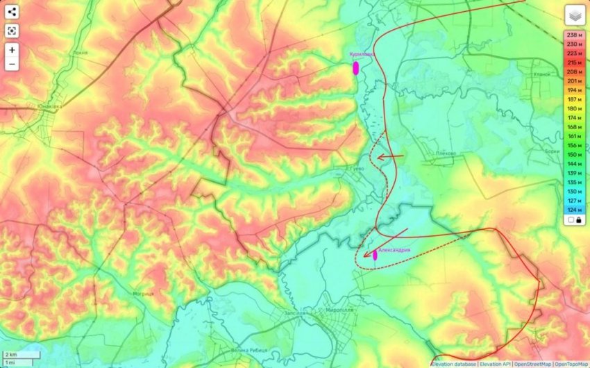 "Также я специально все вынес на рельефную карту, чтобы вы смогли понять сложность задачи, которая стоит перед нашими парнями, если у них есть задача удара в обход Суджи с юга. На самом деле занятие Плёхово, особо эту задачу не решает. Все зависит от контроля холмов западнее села. Только это позволит нам заметно усложнить логистику Суджанской группировки ВСУ. Но кроме того, что противник расположен на холмах, он еще и прикрыт довольно полноводной даже сейчас рекой Псёл", - проинформировал в своём Telegram-канале Юрий Подоляка.