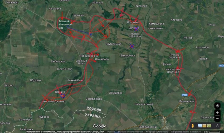 "Удалось продавить противника через почти весь лес северо-западнее населённого пункта Кругленькое и там закрепиться", - отметил военный эксперт в своём Telegram-канале.