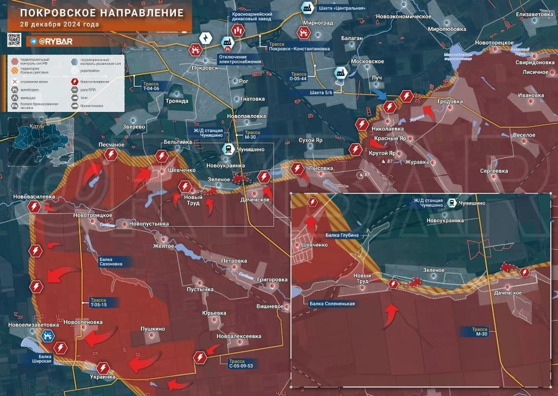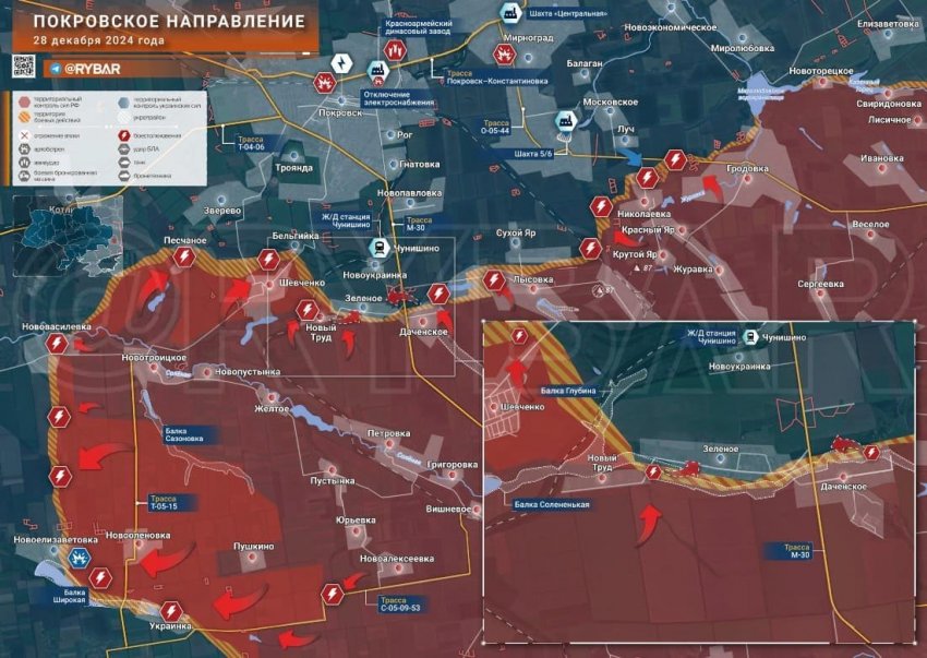 Свежая карта боевых действий на Украине на 29.12.2024. ВС РФ атакуют на ряде участков. Обстановка на фронтах СВО на сегодня