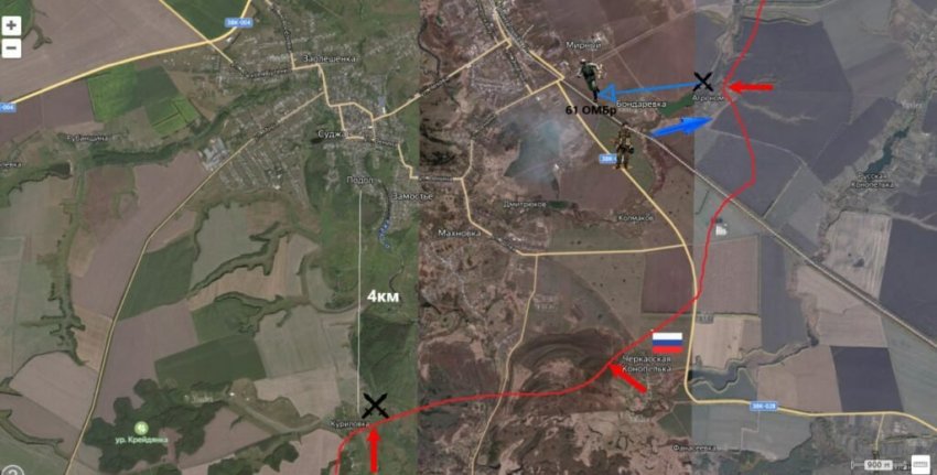 Военкоры отмечают, что после взятия под контроль населенного пункта Черкасская Конопелька штурмовые отряды прорвали оборону противника в Махновке, где ведутся ожесточенные бои. Махновка находится менее чем в трех километрах от Суджи. Закрепление в этом населенном пункте может существенно изменить оперативную ситуацию в секторе, создав дополнительные сложности для ВСУ.