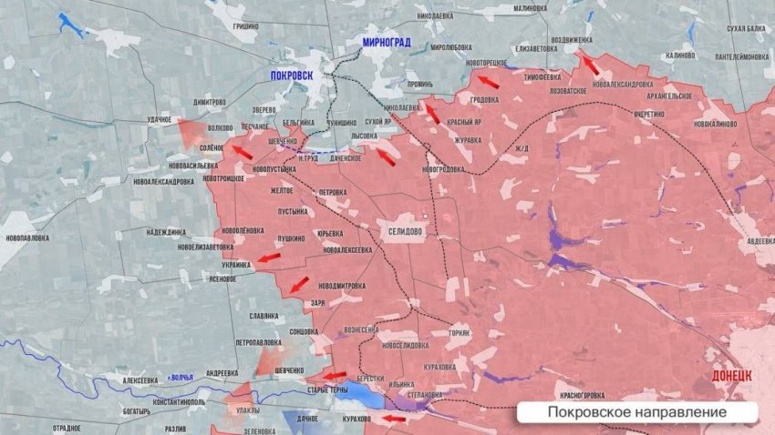 Авдеевское направление, ставшее Покровским, гремело с начало года. Уже в феврале был установлен контроль над пятью населёнными пунктами: Авдеевкой, Северным, Ласточкиным, Петровским и Победой. Взятие Авдеевки - мощного узла обороны ВСУ на Донбассе – стало первой стратегической наступательной операцией этого года. Когда в мае наши войска заняли еще девять наследных пунктов, появилось понятие «очеретинский цветок», включающее само Очеретино и окружающие его сёла. А далее начался охват Покровска. В октябре было освобождено Селидово - важный опорный пункт обороны Покровска. В оборону города ВСУ включили инфраструктуру закрытой шахты им.Коротченко с расположенными там терриконами. С 28 октября Селидово стало надежным российским плацдармом для наступления на Покровск, что примерно в 20 км. Именно из Селидово ВС РФ наступают, постепенно охватывая Покровск.