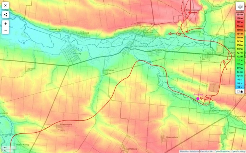 Противник оказывает ожесточенное сопротивление. Подкрепления, недавно переброшенные в этот сектор, сохраняют боеспособность и продолжают сдерживать наши атаки. К тому же, в данном районе враг активно использует укрепленные позиции последней линии обороны перед границей Днепропетровской области, что значительно упрощает для него выполнение оборонительных задач.