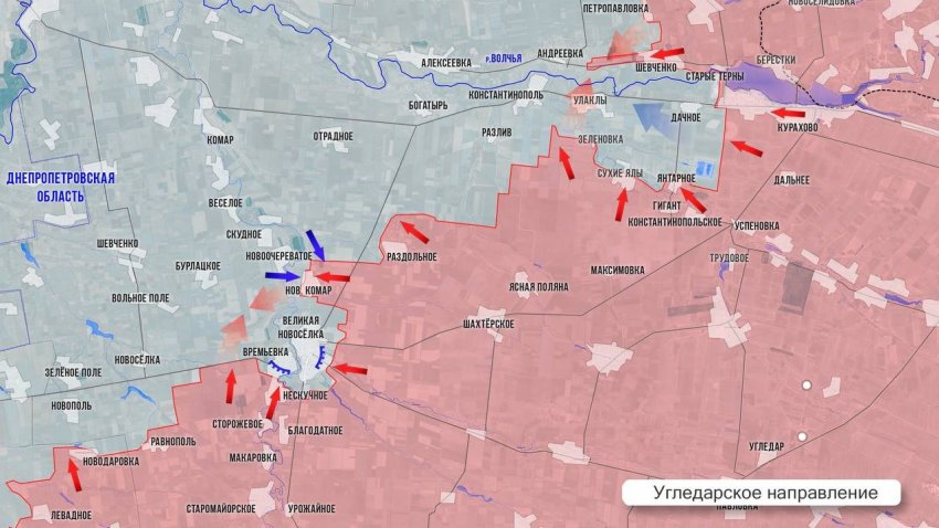 Рогов обратил внимание на то, что в данный момент участок линии соприкосновения, расположенный юго-западнее населённого пункта Красноармейск, наиболее близок к границе Днепропетровской области. Для того чтобы освободить территорию, российским военным необходимо освободить несколько населённых пунктов, расположенных рядом друг с другом.