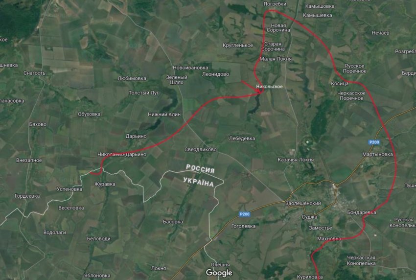 ВС РФ отбили и зачистили Николаево-Дарьино. Российские десантники продемонстрировали боевое знамя ВДВ в южной части села, протянувшегося вдоль дороги, ведущей к госгранице. Вслед за селом, наши зачищают окрестные лесопосадки, двигаясь вдоль границы.