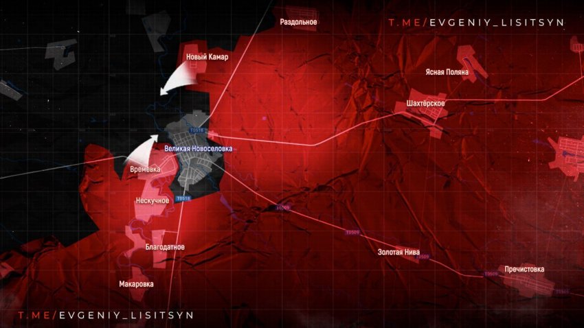 Угледарское направление: Наши штурмовики уверенно продвигаются в районе Великой Новоселки. На юго-восточной и восточной окраинах успехи до 1 км. Продвижение есть и со стороны Времевки. В Зеленовке и Андреевке противник цепляется за позиции, пытаясь контратаковать, чтобы не допустить нашего окружения. Армия России усиливает давление на Дачное - враг явно не справляется с натиском.