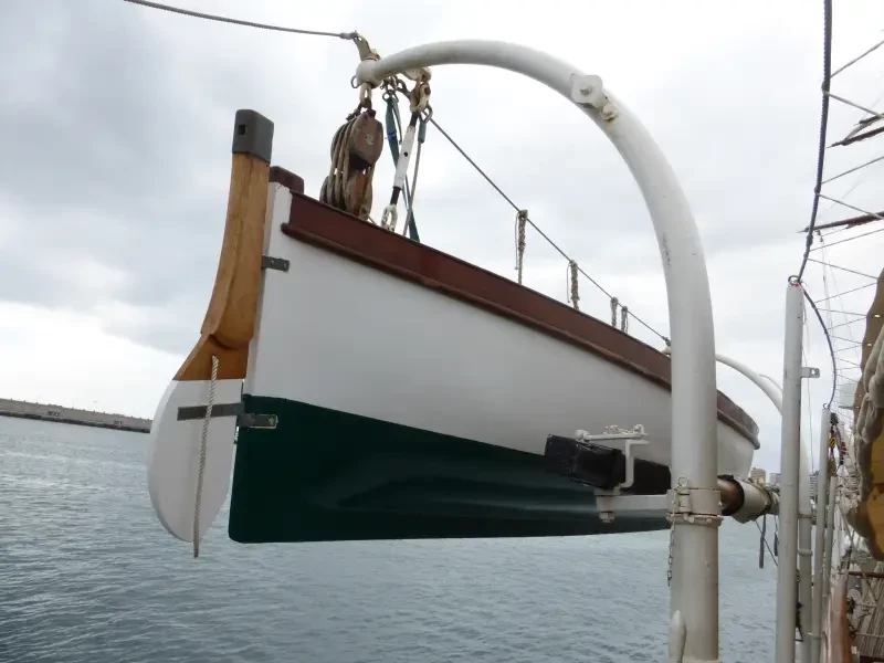 - две парусно-гребные шлюпки вместимостью по 11 человек. Спуск на воду/подъем осуществляется шлюпбалками;