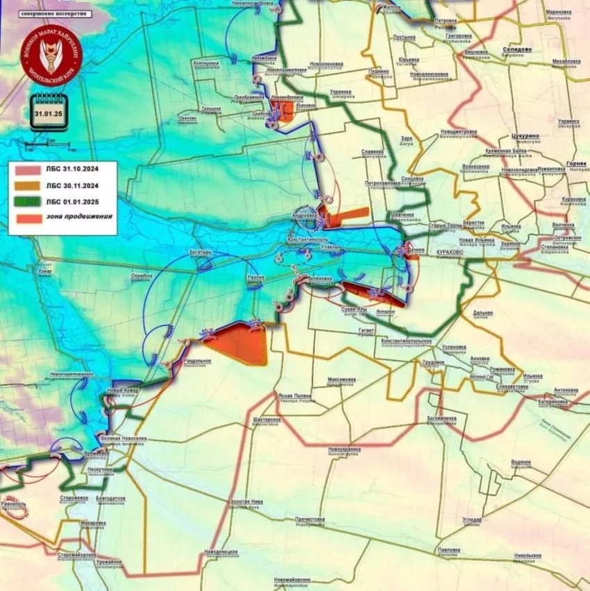 Новая карта боевых действий в зоне СВО по данным на 02.02.2025. Актуальная информация