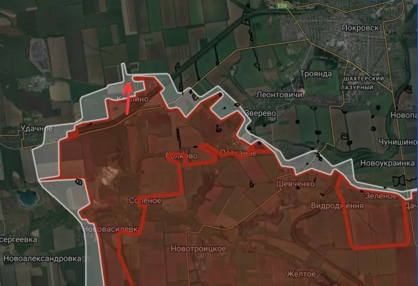 На Покровском направлении российские войска расширили контроль территории и продвинулись в районе Воздвиженки и севернее Котлино;
