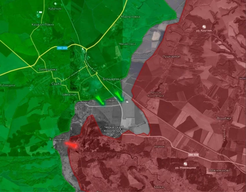 В Фанасеевку утром пытались прорваться две группы украинских штурмовиков на броне, одну машину наши подбили, вторая успела выкинуть у Фанасеевки пехоту и уехать. Часть пехоты ВСУ также закрепилась к востоку от хутора Колмаков и далее до трассы в районе агрокомплекса. Наши сдерживают попытки противника атаковать и продвинуться к Уланку, идут встречные бои.