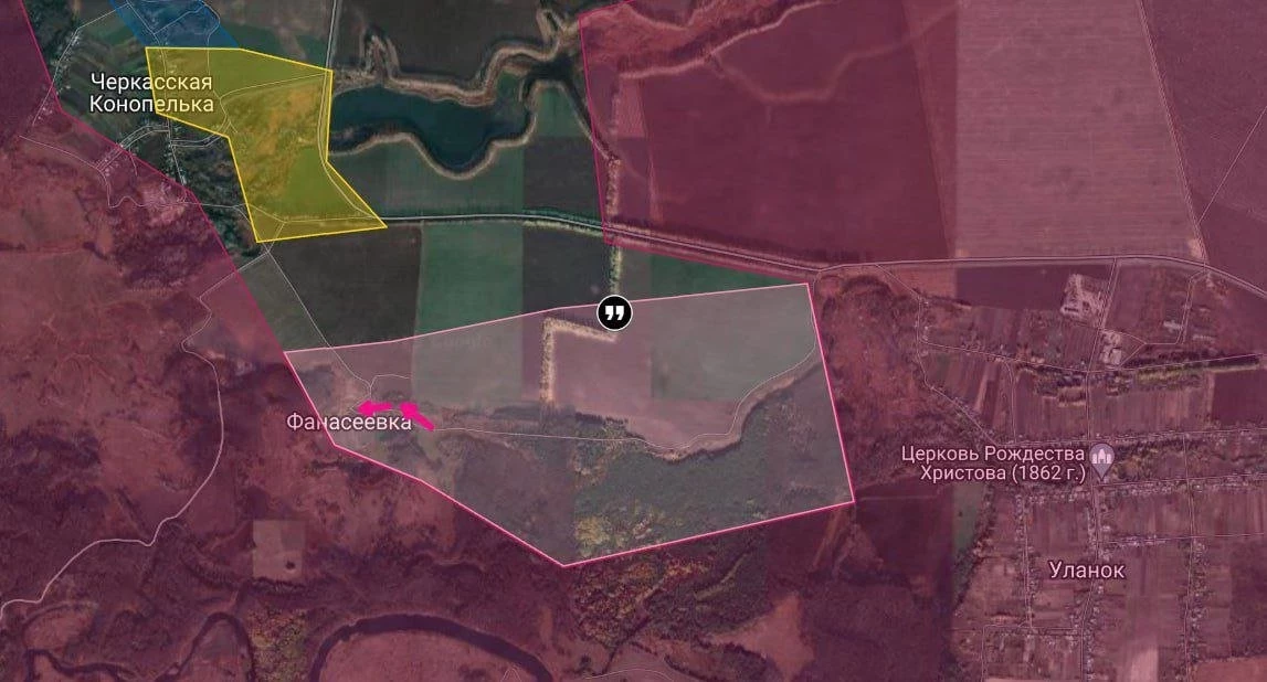 Telegram-канал "БелВПО" пишет о том, что российские войска зачищают Свердликово и Фанасеевку.