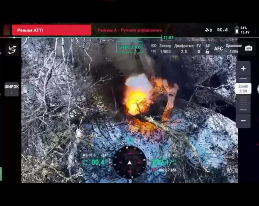 На кадрах видно, как воздушная разведка полка 1434 «АХМАТ-Чечня» обнаруживает блиндаж противника, скрытый под маскировочной сетью, недалеко от села Мартыновка в Суджанском районе. ВС РФ наносят серию точных ударов, в результате которых укрытие оказывается уничтоженным.