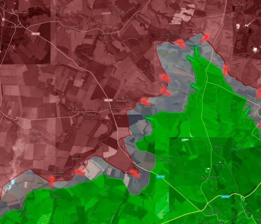 Telegram-канал "БелВПО" пишет о том, что ВС РФ ведут штурмовые действия в Лебедевке, а также южнее Свердликово, давят в направлении Новенького.