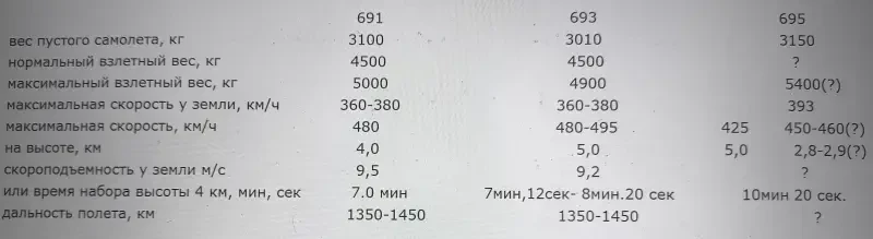 Ниже я составил таблицу ЛТХ трех основных модификаций штурмовика. Поскольку данные в разных источниках различаются, то указывал или наиболее вероятные, или просто «от и до».