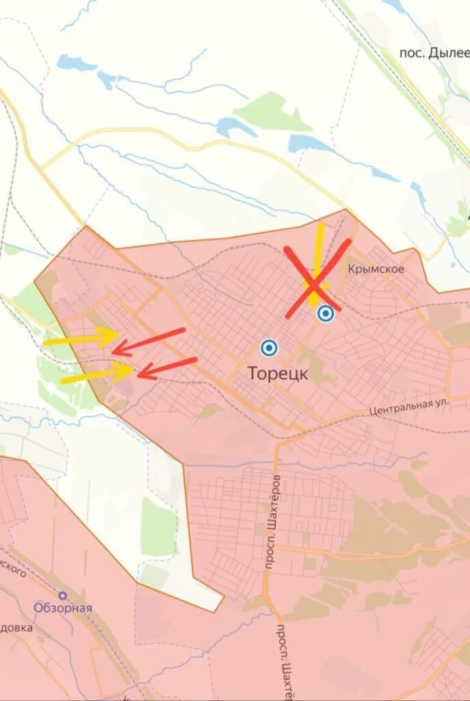 На Краснолиманском направлении южнее Ямполовки удалось продвинуться на 300 метров, в лесу взяты 2 опорника, нарушена логистика врага. В районе Торского идут ожесточённые бои. Продвигаемся в направлении Колодезей.