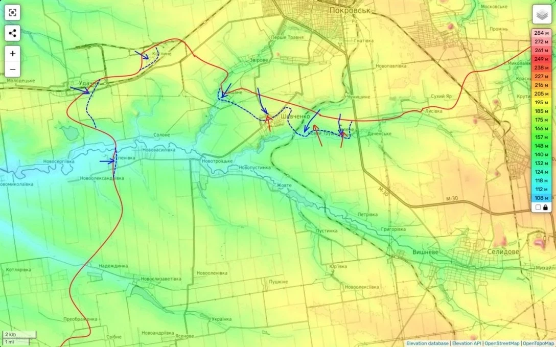 На Покровском направлении идут бои за н.п. Шевченко. На сегодня это ключевая точка сражения. Противник продолжает лезть в село, в надежде выбить отсюда наши силы и таким образом создать угрозу окружения частей в районе Котлино, песчаного и Удачного.