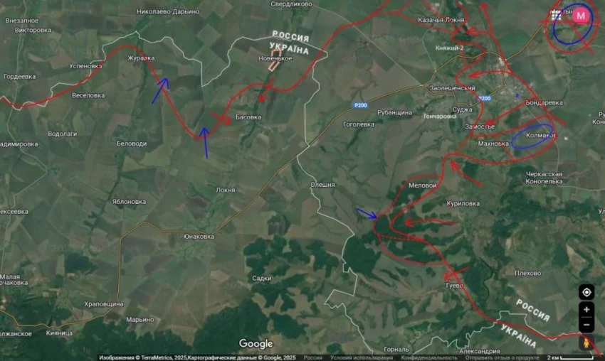 Южнее Суджи наши части продолжают пытаться выйти на южные окраины Гончаровки и продолжается зачистка холмов между Меловым и Гуево.