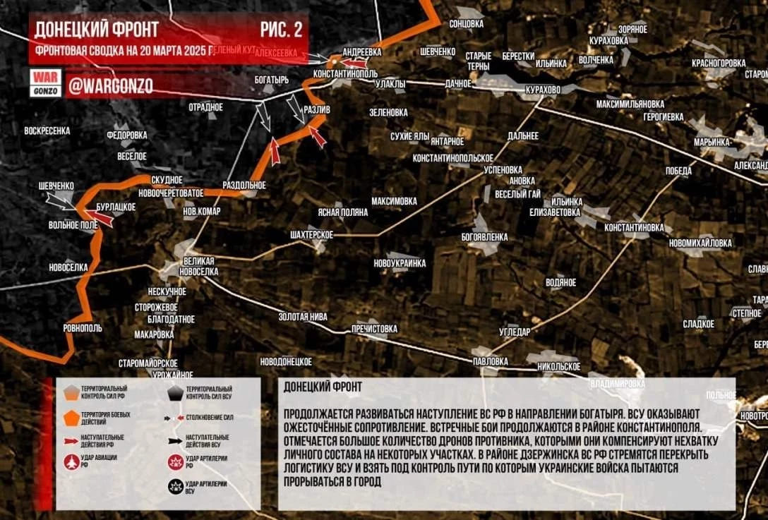 Карта боевых действий на Украине на 20 марта 2025 года: оперативная военная сводка