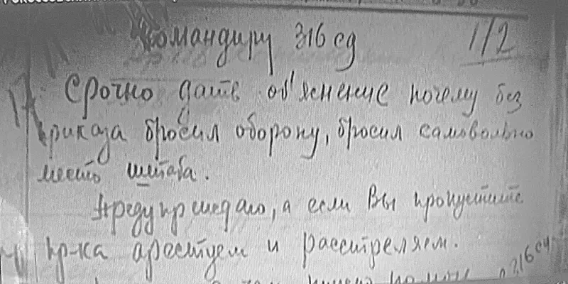 «Ободряющая» шифровка Жукова, направленная командиру 316 сд И.В. Панфилову, 17.11.41 г. 8.30.