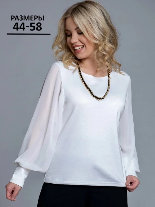 Короткие летние блузки — это не всегда про открытые плечи и ультраоблегающие фасоны. Модель «Оливия» от бренда With street — тому подтверждение: она создана для тех, кто ищет элегантность в удобстве. Выполненная из мягкого джерси с рукавами из полупрозрачного шифона, эта блузка отлично подойдёт для офиса, праздников и повседневных образов. Несмотря на длинный рукав, ткань лёгкая и дышащая, а свободный крой не сковывает движения. Такая блузка — находка для женщин, предпочитающих короткие летние блузки, но в более закрытом и классическом исполнении, особенно в больших размерах.
