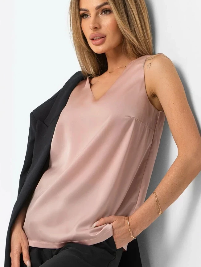 Ты его наденешь — и забудешь про все остальные летние блузки с коротким рукавом. Этот топ от Happyfox — как капля утренней росы на теле: лёгкий, невесомый, прохладный. В основе — японский шелк на 100% из полиэстера. Он мягко скользит по коже, дарит комфорт и струится при каждом движении. А главное — не просвечивает, не мнётся, не тянется. Красота без заморочек. V-образный вырез делает акцент на ключицах и зоне декольте, вытягивая силуэт визуально. Прямой удлинённый крой подходит практически под любую фигуру и отлично комбинируется с юбками, брюками и даже джинсами с высокой посадкой. Розовый оттенок — не инфантильный, а свежий и универсальный. Идеален для офиса, вечеринки, романтического свидания или просто солнечного дня. Это не просто топ — это ваша новая летняя зависимость.