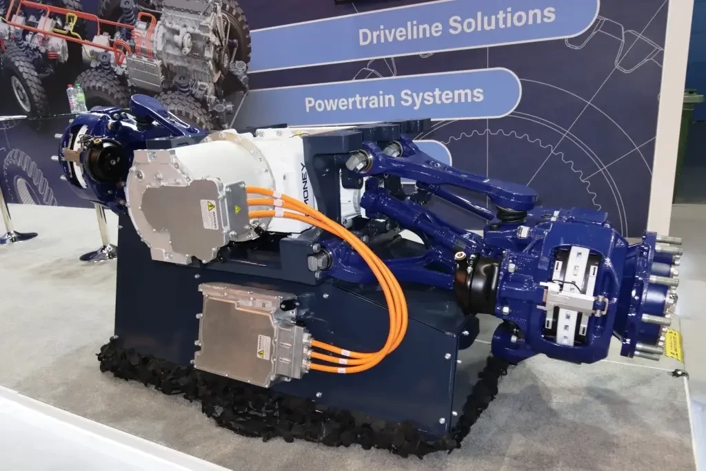 Машина оснащена четырьмя электрическими силовыми агрегатами T-900e, разработанными компанией Timoney. Каждый такой агрегат фактически представляет собой отдельный мост. В его состав входят электромотор мощностью 280 л.с., редуктор, полуоси, ступицы колёс и подвеска.