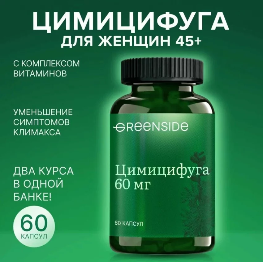Этот БАД сочетает силу фитоэстрогенов цимицифуги с мощным витаминным комплексом (11 витаминов), создавая двойной эффект: уменьшает приливы, ночную потливость и перепады настроения, одновременно улучшая состояние кожи, волос и ногтей. Цимицифуга мягко корректирует гормональный фон, а витамины А, Е, С и группы В работают как антиоксиданты, поддерживают синтез коллагена и защищают сердечно-сосудистую систему. Удобный прием (1 капсула в день) и заметный эффект уже через 2-3 недели делают его отличным выбором для женщин 45+.