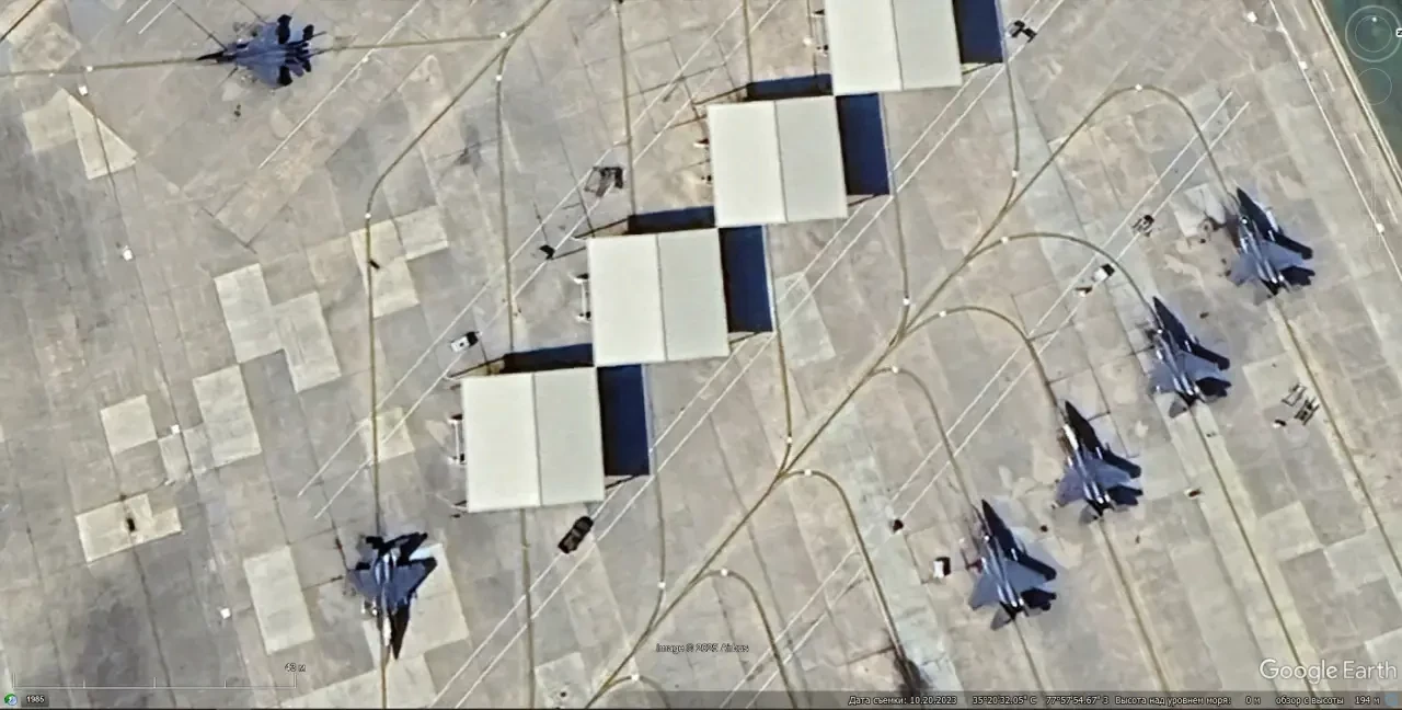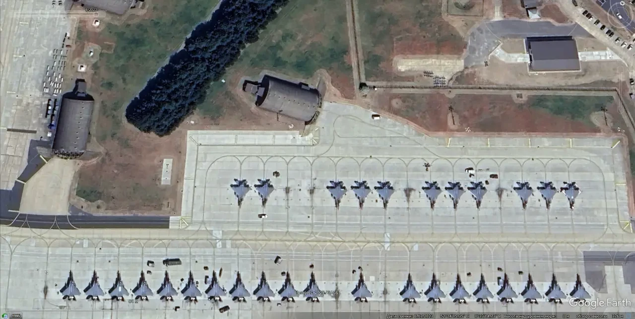 Спутниковый снимок Google Earth: истребители бомбардировщики F-15E на авиабазе Маунтин-Хоум