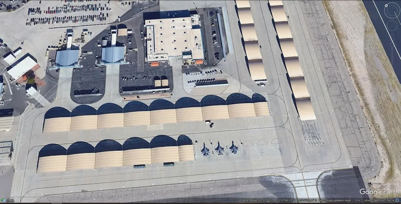 Спутниковый снимок Google Earth: истребители F-16C на авиабазе Неллис
