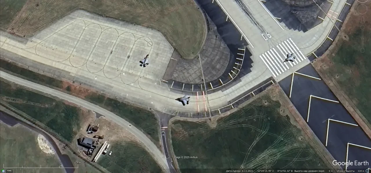Спутниковый снимок Google Earth: самолёты Tornado на авиабазе Геди