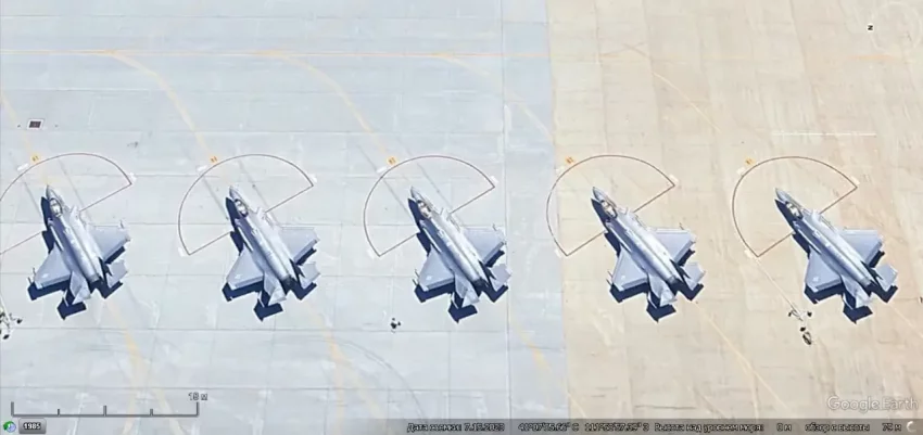 Спутниковый снимок Google Earth: истребители-бомбардировщики F-35A рядом с укрытиями на авиабазе Волкель
