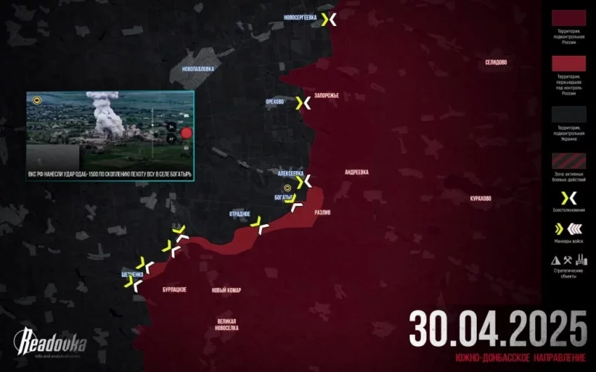 Обзор событий на фронтах специальной военной операции (СВО) на Украине, последние новости от 1 мая 2025 года, а также свежие карты боевых действий - в материале сайта N4k.