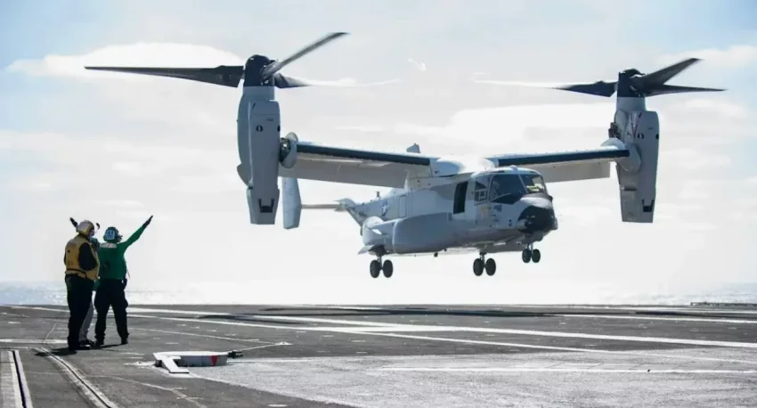 Наконец, пара конвертопланов CMV-22B Osprey выполняют роль корабельных грузоперевозчиков на большие расстояния, перевозя людей, припасы и даже почту из ближайшего порта на корабль.