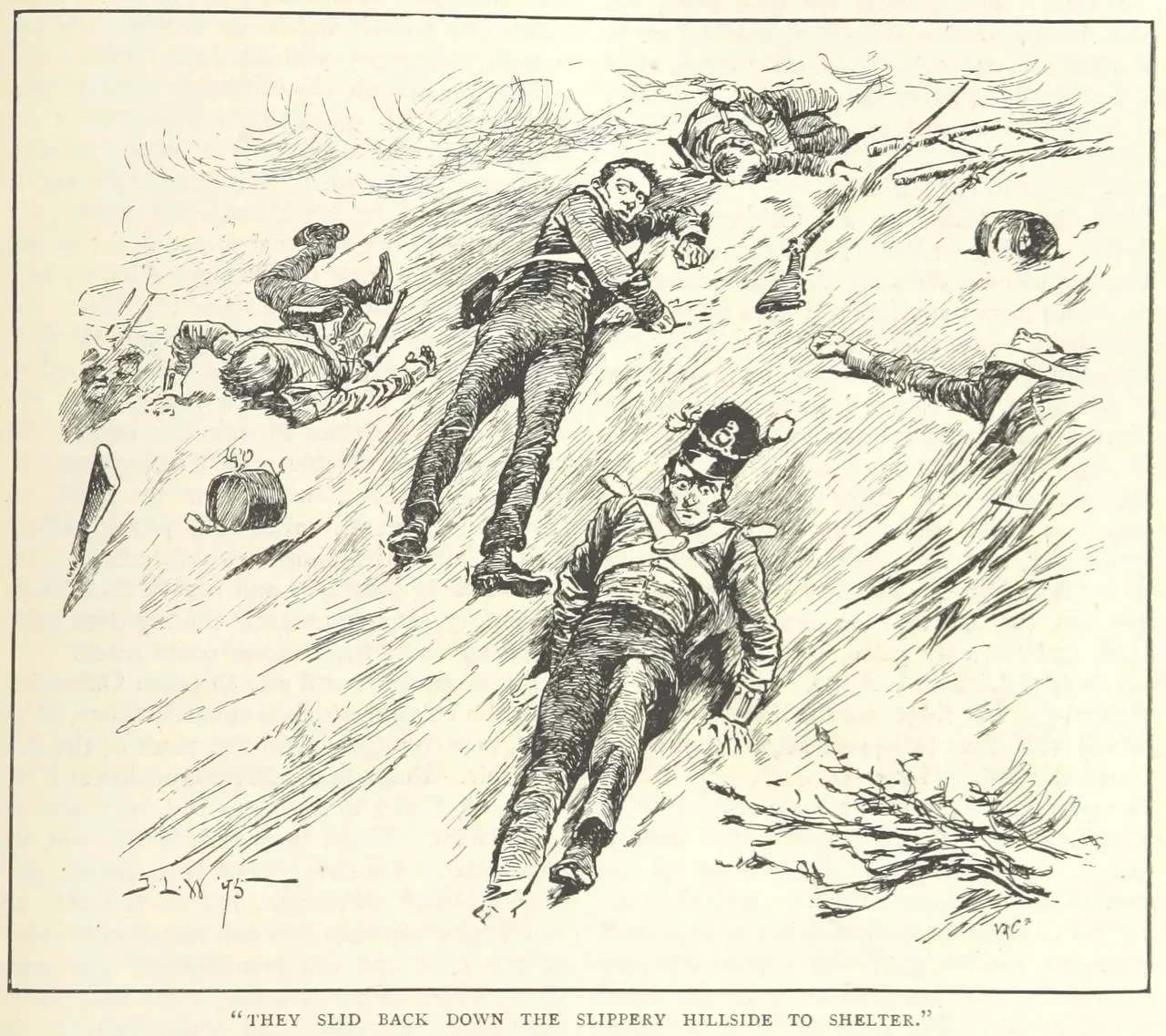 Между тем отряд Ричардса вышел на позиции для атаки, но обнаружил, что с юга не доносится ни звука (отряд Ладлоу уже зализывал раны в лагере, но мобильного телефона у Ричардса не было...). Между тем Ранаджор Сингх сосредоточил свои войска у стен форта, готовясь к атаке. Гуркхи атаковали, но были отбиты залпами, затем ещё и ещё раз. К 4 часам по полудни у отряда Ричардса стали заканчиваться боеприпасы. Он отправил гонца к генерал-майору Мартинделлу с просьбой о подкреплении, а сам отошёл на позицию, более выгодную с точки зрения обороны. Гуркхи до заката атаковали британский отряд девять раз, а потом... А потом пришёл приказ Мартинделла — отходить. Генерал-майору не улыбалось новое Налапани. Отряд отходил под огнём неприятеля, по узкой тропе над крутым склоном...