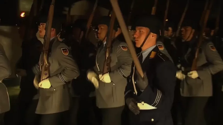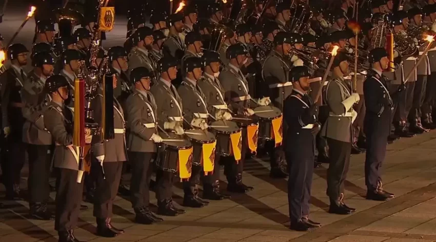 А программа эта называется Großer Zapfenstreich – если написать это русскими буквами, то звучит как «Гроссэр Цапфенштрайх», мягко говоря, не очень приятно для русского человека.