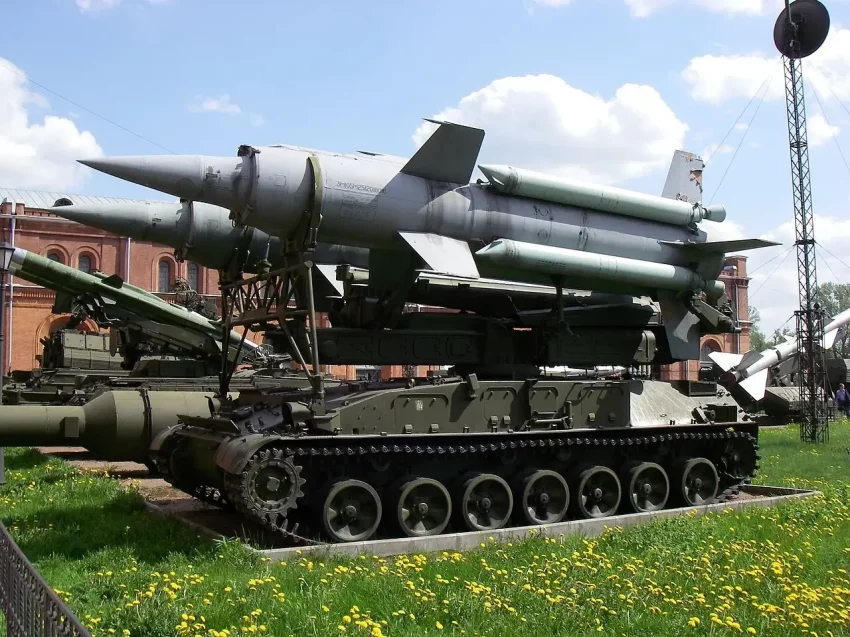 Фото, демонстрирующее принцип ПВРД на советской зенитной ракете 3М8: тело ракеты и четыре разгонных ускорителя.