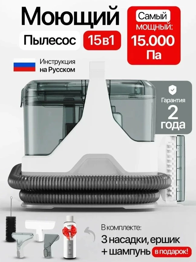 Моющий пылесос Homiko — это компактный, но мощный помощник, способный заменить вызов клининговой бригады. Он справляется с шерстью, пылевыми клещами и стойкими пятнами, обеспечивая глубокую чистку мебели и автосалона до 8 см вглубь. В арсенале — три насадки, функция сбора жидкостей, удобные баки для воды и шнур 5,5 м. Такой пылесос станет отличным решением для ежедневной уборки и достойным участником в списке лучших моющих пылесосов для мебели по соотношению «цена–результат».