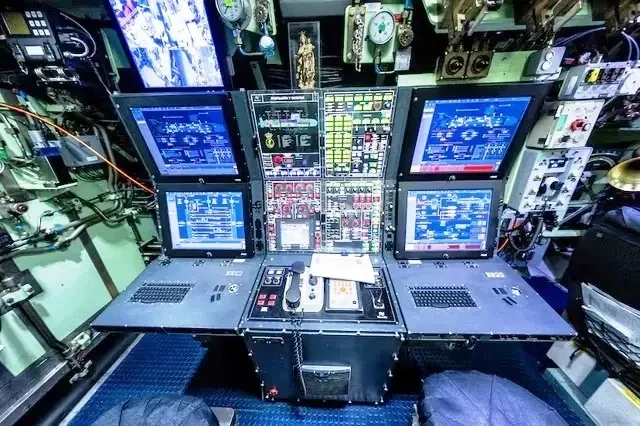• ГАС контроля собственных шумов и вибрации. С помощью 30 датчиков, расположенных в различных частях корпуса, контролирует и регистрирует собственные шумы и определяет оптимальные с точки зрения шумности параметры работы корабельных систем.