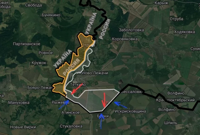 «Вражеские штурмовики остановлены огнем из стрелкового оружия на восточных окраинах Рыжевки. Пересечения оккупантами госграницы не допущено. Вчера после полудня из Бессаловки (Сумская область) в направлении госграницы выдвинулась очередная штурмовая группа 225-го ОШП. В результате стрелкового боя большая часть живой силы противника уничтожена, остальные сбежали вглубь украинской территории. Нашей авиацией нанесено прицельное поражение семью фугасными авиационными бомбами по скоплению живой силы и техники в селах Атинское и Рыжевка. В списках пропавших без вести 225-го и 425-го отдельных штурмовых полков прибавилось несколько десятков фамилий. На данном направлении за сутки уничтожено пять единиц вражеской техники», - отметил «Северный ветер».