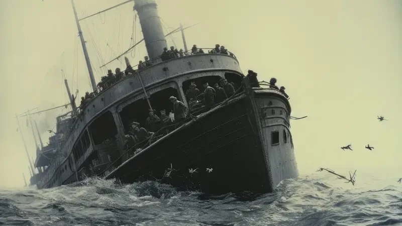 «Струма» в море, 24 февраля 1942 г. Художник Мордехай Ардон